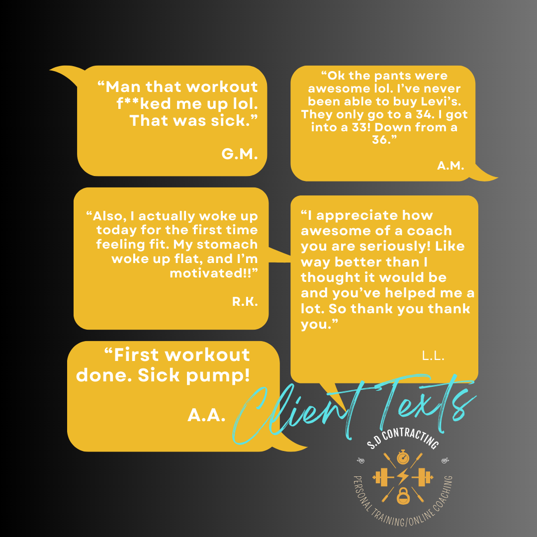 Morning messages regarding the gym, nutrition, or the mental side of things along with a daily quote to get you going for the day!